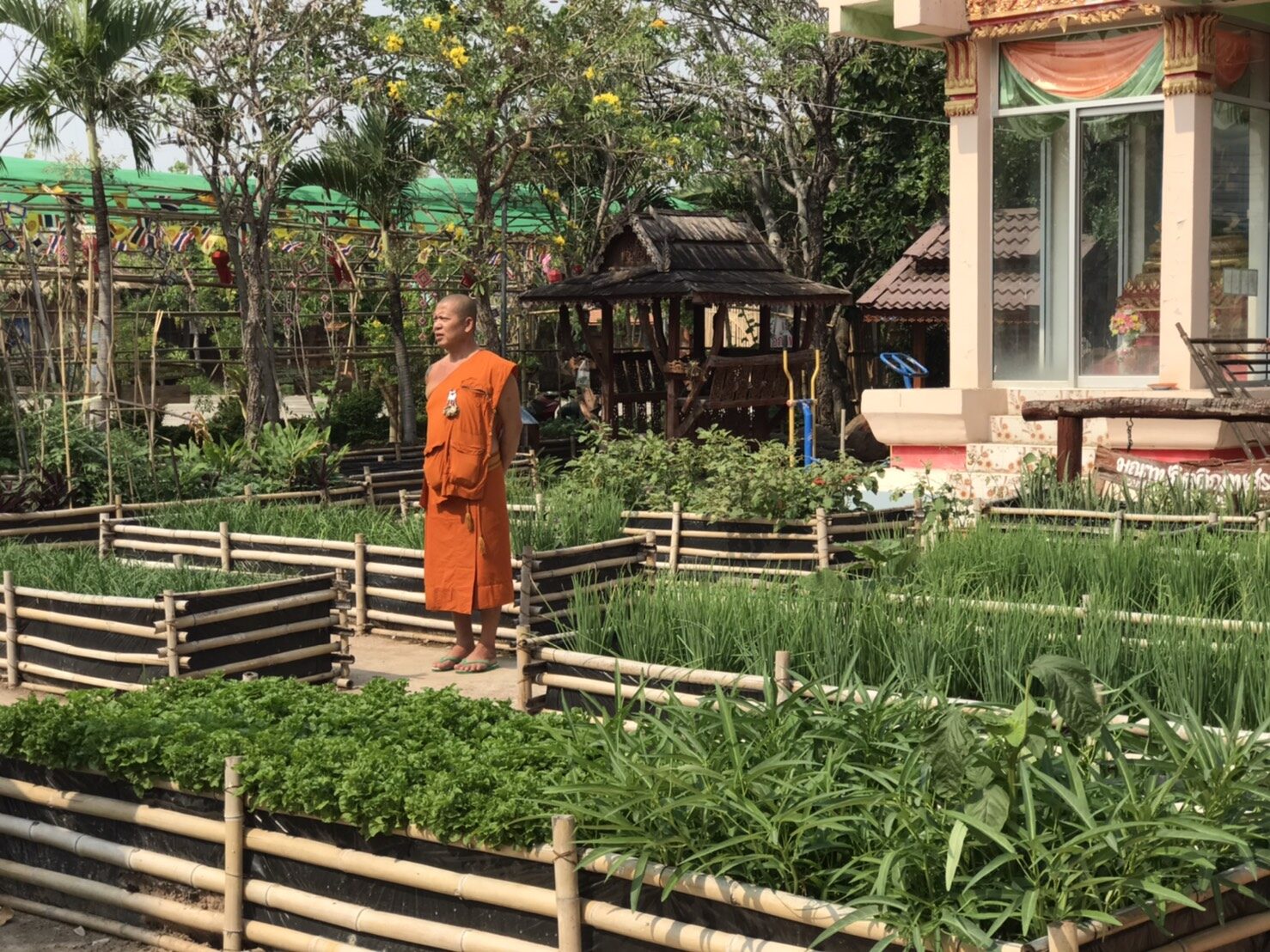 เมื่อวันที่ 25 มีนาคม ที่วัดสวรรคงคา บ้านยางดำ ม.2 ตำบลยางคำ อ.หนองเรือ จ.ขอนแก่น นางรจนา สิงหรา ณ อยุธยา พัฒนาการอำเภอหนองเรือ ติดตามการดำเนินงานโครงการวัด ประชา รัฐ สร้างสุข ขยายผลปลูกผักสวนครัว เป็นต้นแบบการสร้างความมั่นคงทางอาหาร จากวัดสู่ชุมชน ตามหลัก (บวร) โดยปลูกผักสวนครัว อาทิ ผักบุ้ง มะเขือ พริก ต้นหอม ข่า กะเพรา คะน้า กุ้ยช่าย ฯลฯ เป็นครัวชุมชน