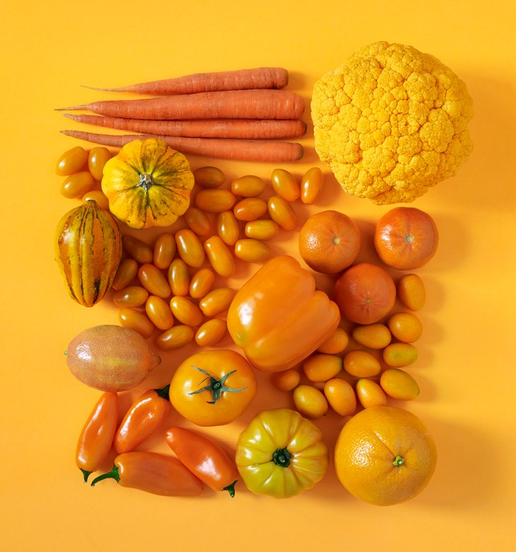 ผักผลไม้สีดังกล่าวล้วนอุดมไปด้วยวิตามินเอ วิตามินซี และเบต้าแคโรทีน ซึ่งทั้งช่วยลดความเสี่ยงของโรคมะเร็ง ดีต่อหัวใจและหลอดเลือด ร่วมทั้งยังช่วยบำรุงสายตา และช่วยเสริมสร้างระบบภูมิคุ้มกันในร่างกาย