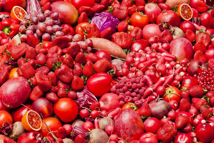สารที่อยู่ในผัก-ผลไม้ที่มีสีแดง ก็คือ ไลโคปีน (Lycopene) ซึ่งเป็นสารต้านอนุมูลอิสระ ช่วยลดการเกิดมะเร็ง โดยเฉพาะมะเร็งปอด และมะเร็งต่อมลูกหมาก รวมทั้งช่วยลดไขมันชนิดไม่ดี ที่เป็นต้นเหตุของโรคหลอดเลือดหัวใจ ที่สำคัญคือช่วยบำรุงผิวพรรณให้ดูเปล่งปลั่งสดใส