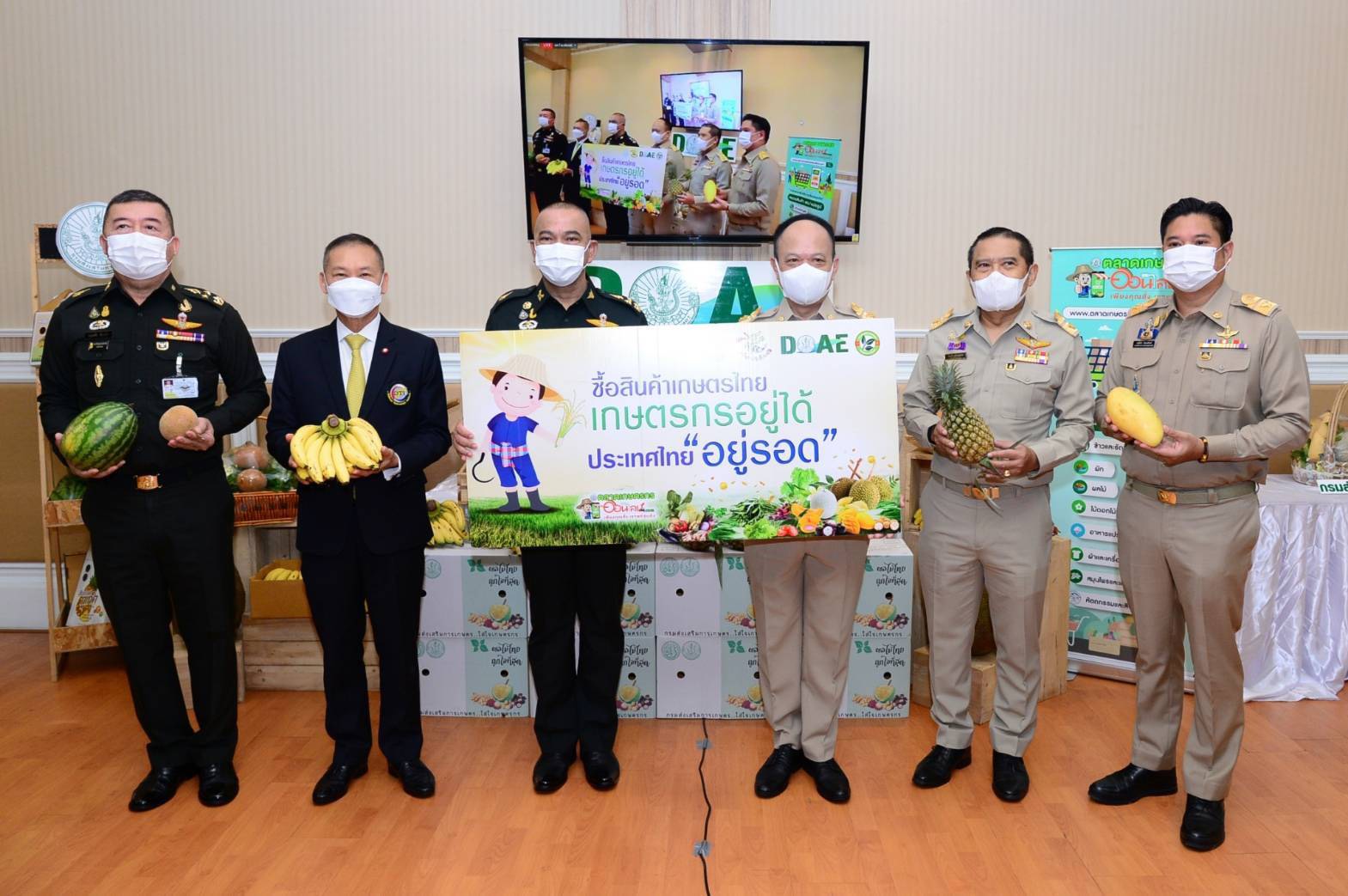 โดยได้มอบหมายกรมการข้าว กรมปศุสัตว์ กรมหม่อนไหม กรมวิชาการเกษตร กรมส่งเสริมการเกษตร และสำนักงานเกษตรและสหกรณ์จังหวัด จัดทำข้อมูลผลผลิตทางการเกษตร ในปี 2564 ที่ประสงค์ให้กระทรวงกลาโหมรับซื้อและจัดจุดจำหน่าย โดยให้กรมส่งเสริมการเกษตรเป็นหน่วยงานหลักจัดทำข้อมูลและแผนปฏิบัติการที่จะดำเนินงานร่วมกับกระทรวงกลาโหม ภายหลังลงนามบันทึกข้อตกลงความร่วมมือฯ