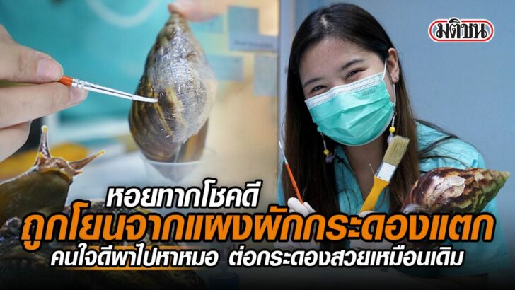 หอยทากโชคดี ถูกโยนจากแผงผัก กระดองแตก คนใจดีพาไปหาหมอ ต่อกระดองสวยเหมือนเดิม